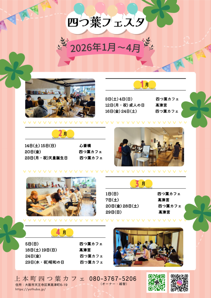 ※お支払いは銀行振り込みまたは四つ葉カフェにて直接支払いになります。